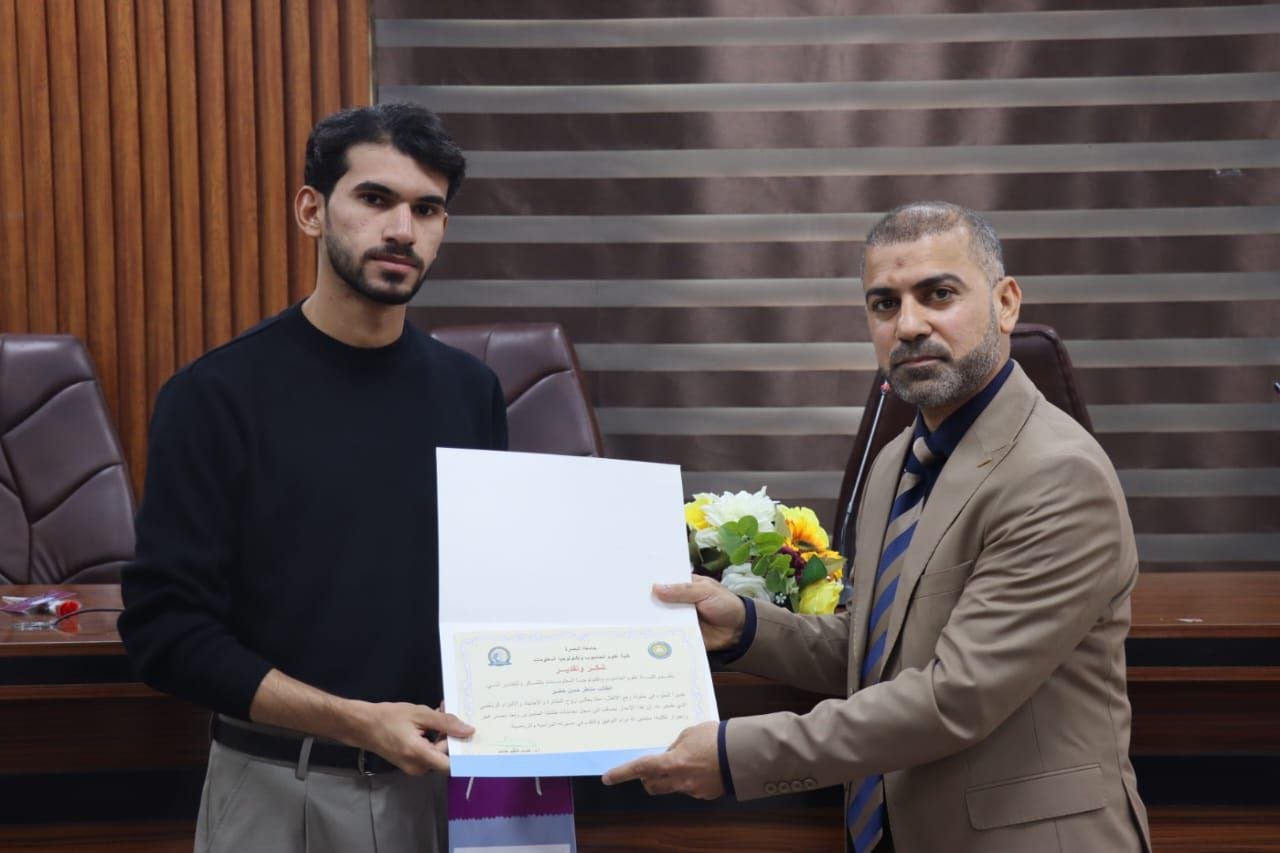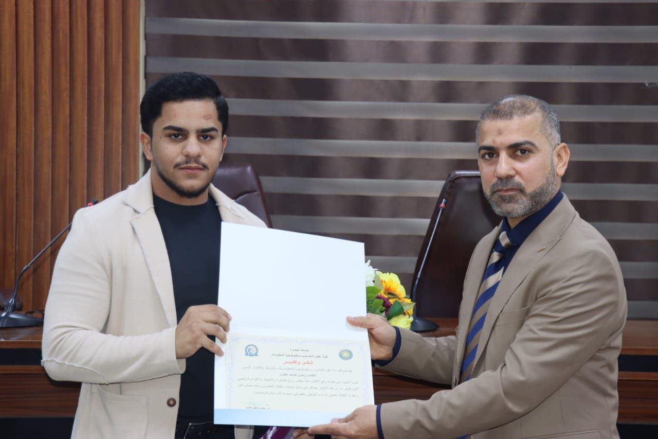 The Dean of the College, Prof.Dr. Hisham Kadhum Hashim, honored the winning students in recognition of their athletic achievement and to encourage them to pursue further successes.