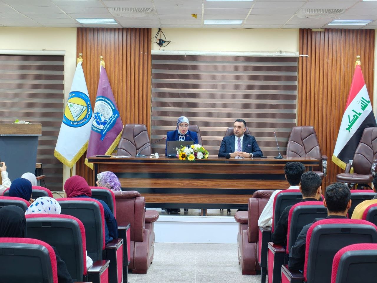 The workshop included a lecture presented by Dr. Salah Faleh and Assistant Lecturer Asmaa Sharif, who reviewed the most important practical steps that fourth-year students need to prepare a comprehensive research project.
