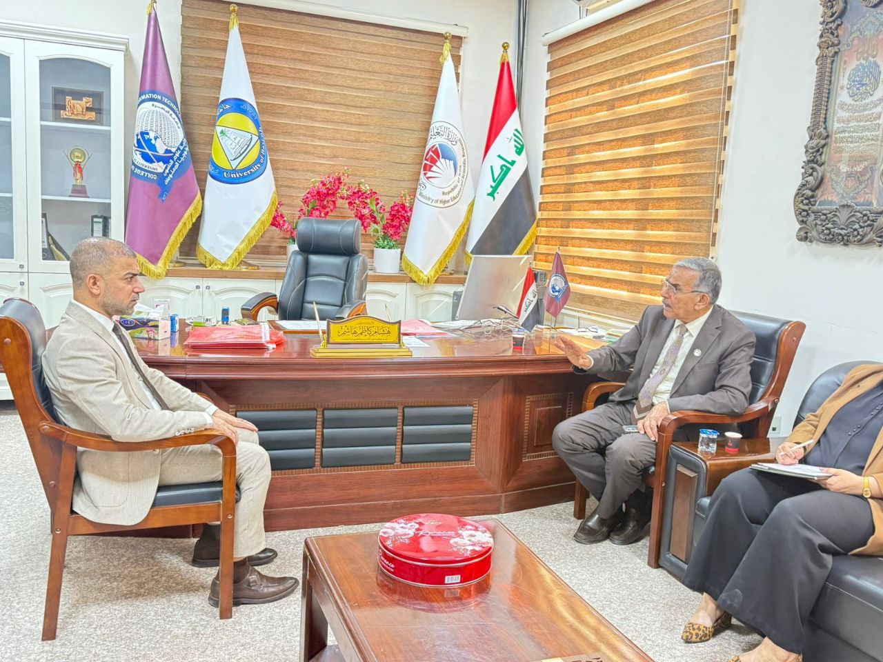They were received by Prof. Dr. Hisham Kadhum Hashim, Dean of the College of Computer Science and Information Technology at University of Basrah. The meeting included an in-depth discussion of the technical and administrative aspects related to organizing the examination, the mechanisms for formulating questions, and adopting evaluation criteria in accordance with ministerial directives, in order to ensure equal opportunities and adherence to scientific accuracy and objectivity among students.