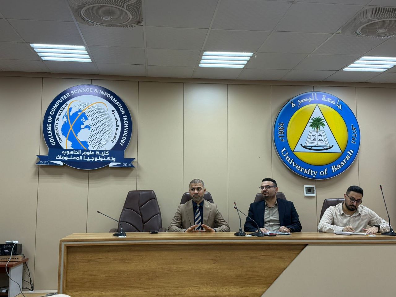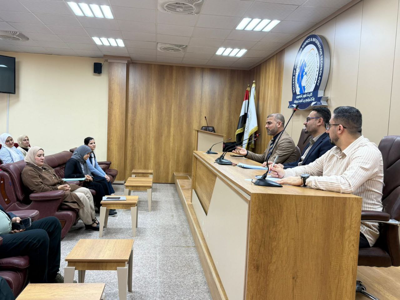 The Dean of the College of Computer Science and Information Technology, Prof. Dr. Hisham Kadhum Hashim, held a meeting with the Head of the Department of Intelligent Medical Systems, Dr. Muhammad Abdul Rahman, to offer his congratulations on assuming his new position.