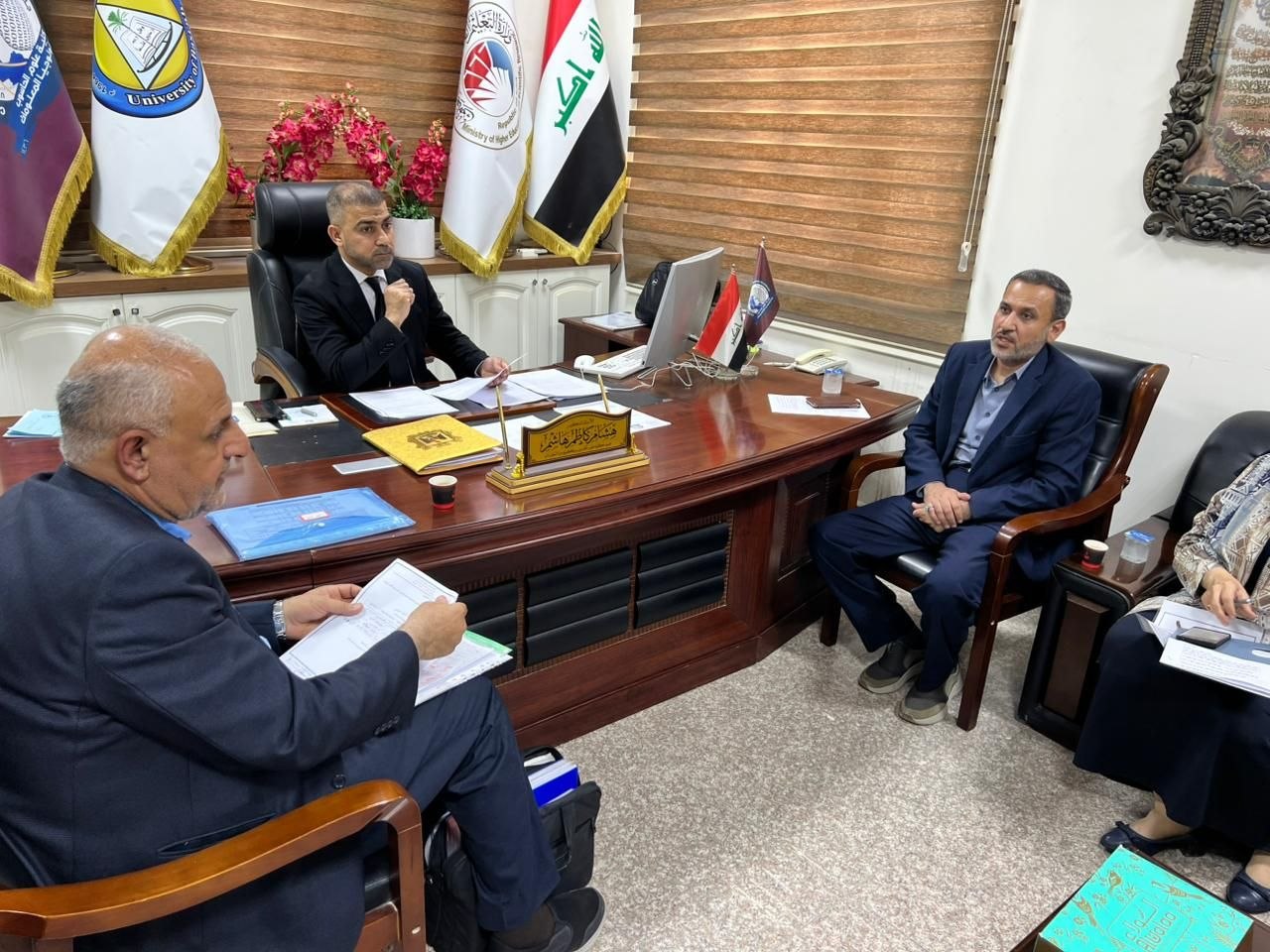 The Dean of the College of Computer Science and Information Technology, Prof. Dr. Hisham Kadhum Hashim, held a meeting with members of the college's Promotions Committee to follow up on the progress of academic promotions.